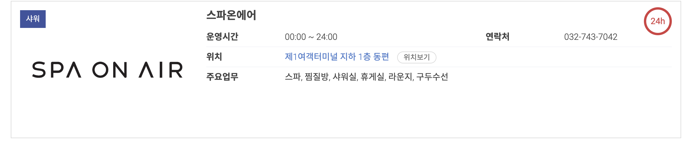 ◆ 위치 : 제1터미널 4층 중앙, 25번 게이트